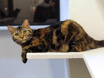 丸い体型で基本はゴロ寝。あまり撫でてもらうのは好きじゃなく、他の猫とじゃれて遊ぶのが好き。